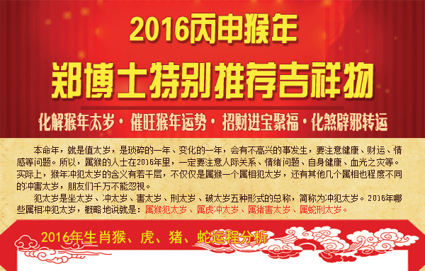 郑博士2016猴年化太岁吉祥物专区