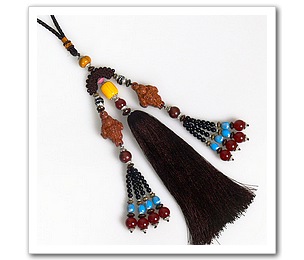黑檀木千年成材,原木出产数量极少,质地紧密坚硬,其种类、数量有限,被喻为木中“黄金”。佛教中认为檀木有驱邪避邪之效用,黑檀制品常被作为吉祥物佩戴,以保平安吉祥。将双金蟾挂件挂在车上或床头能起到出入平安,招财旺运的功效。对于小有成就的企业老板更为适合,能使今后事业发展更为顺利,逐渐减少漏财等不良因素。