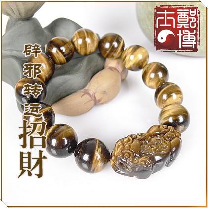 | | 虎眼石招财辟邪貔貅水晶手链 品牌:郑博士吉祥物 材质:纯天然金黄虎眼石 尺寸:虎眼石珠径约14或16毫米(可选) 虎眼石貔貅约长32毫米、宽17毫米、高12毫米 |
